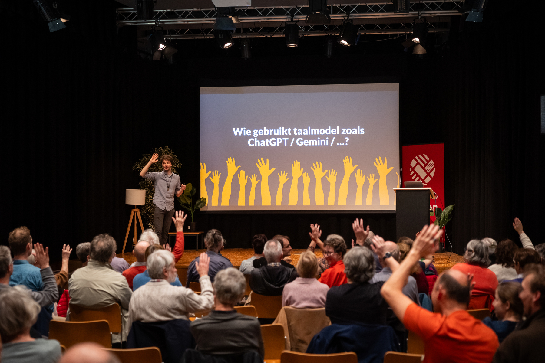 Thomas Winters speaking at the Digitale Week in Bibliotheek Tweebronnen in Leuven.